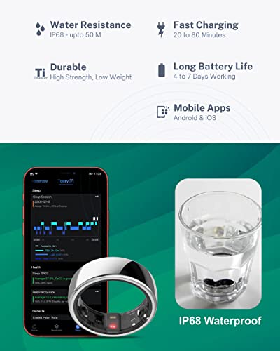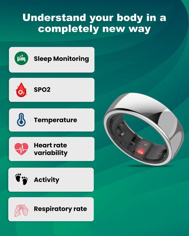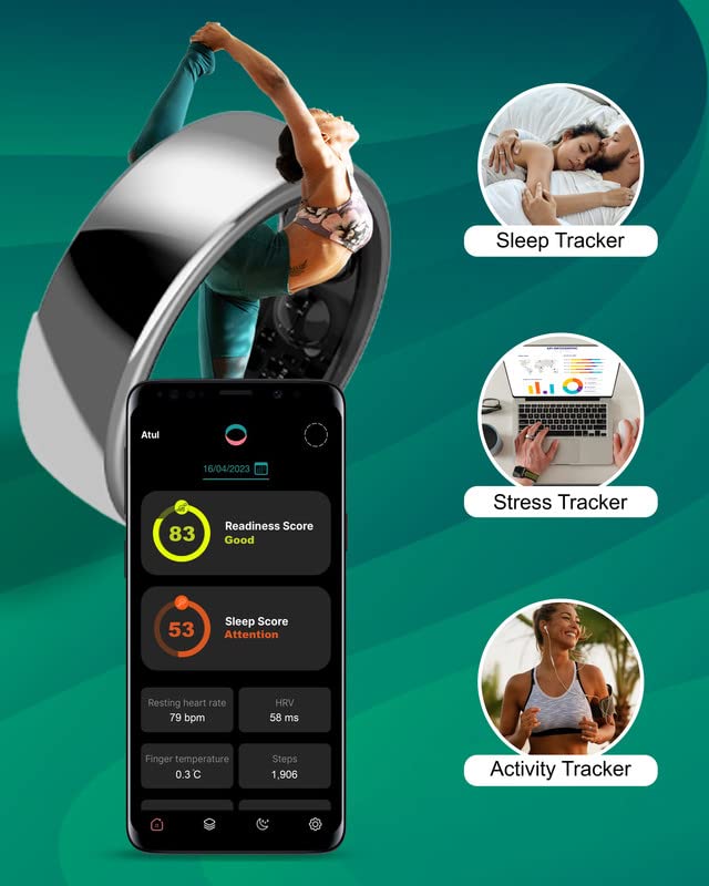 aabo Ring Size 9 I Stylish Health & Fitness Tracker Smart Ring I AI Enabled I Tracks Advance Sleep I Stress & 10+ parameters I Mobile App Included I CE Certified Titanium IP68 Waterproof (Silver)