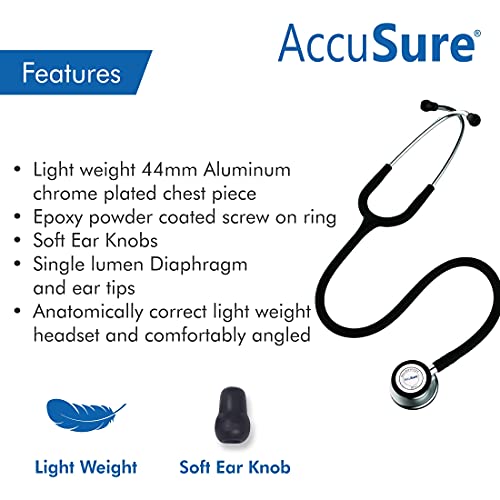 AccuSure Doctors Stethoscope Seamless PVC Tubing Superb Heart Monitoring Stethoscope Medical Equipment, Health Instrument | Lightweight | Compact | Classc Look | ST01 For Medical Students And Doctors