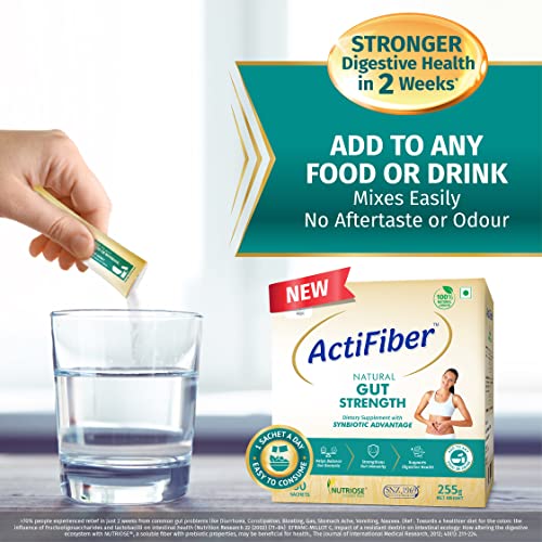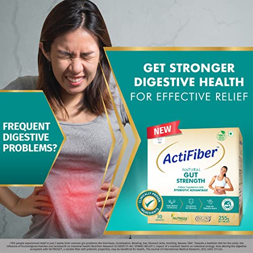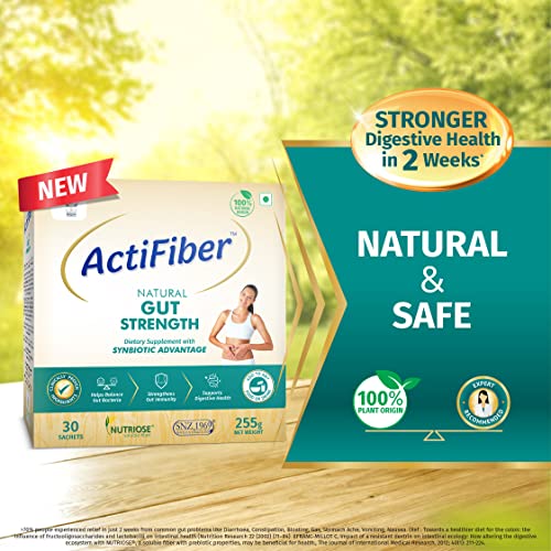 Actifiber Natural Gut Strength|Prebiotic & Probiotic Supplement powder for Stronger Digestive Health|Effective Solution for Common Digestive problems,Gas, Constipation(1 X 255 Gms Pack of 30 Sachets)
