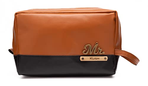 Aica Personalized Name Leather Toiletry Bag for Men & Women – TanBrown & Black