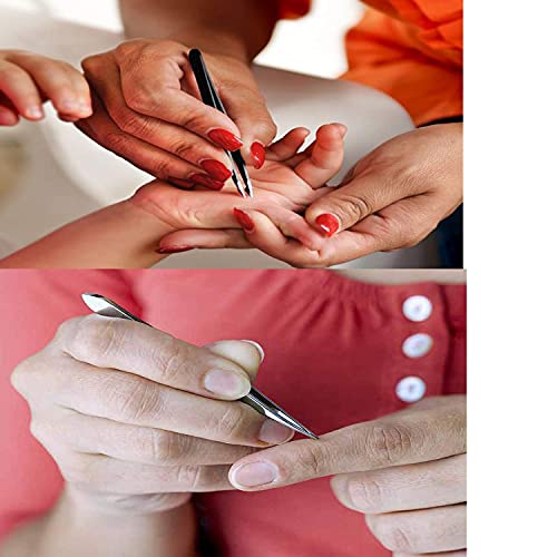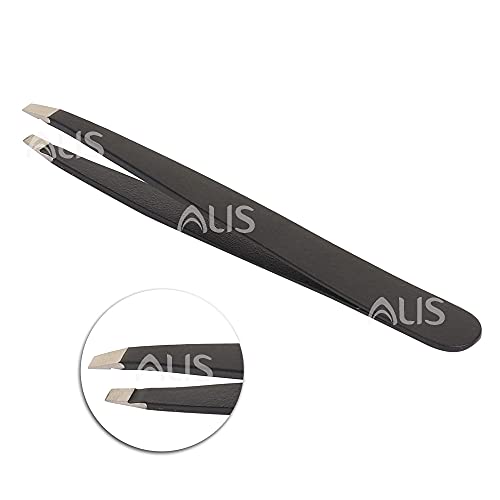 Alis Professional Stainless Steel 3PCS Black Tweezers Slant, Pointed And Flat-Tip Tweezer for Eyebrow Face Nose Hair Removal, Splinter Removal (BP-XHG SETOF 3)