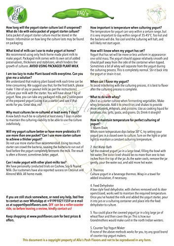 EAT WITH PLEASURE & GUILT-FREE, AGAIN & AGAIN: Combine it with plant milk of your choice and enjoy the rich, creamy, thick, and delicious Vegan Yo- Dairy-Free-Gurt. Made at home, by You! Once you handcraft your vegan Yo- Dairy-Free-Gurt, you can use it as a starter to culture the next batch.
