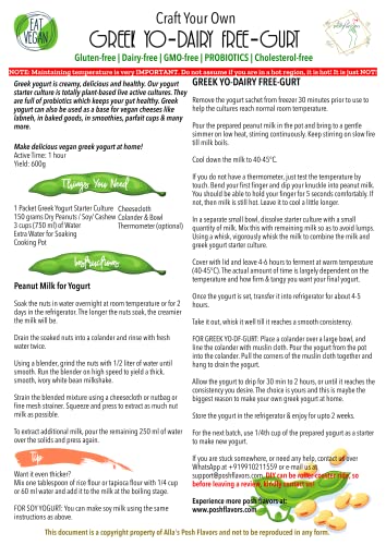 NON-GMO AND GLUTEN FREE: Craft-Your-Own Vegan Greek Yo- Dairy-Free-Gurt at home with absolute peace of mind with this starter culture as it contains only the right ingredients and nothing artificial.