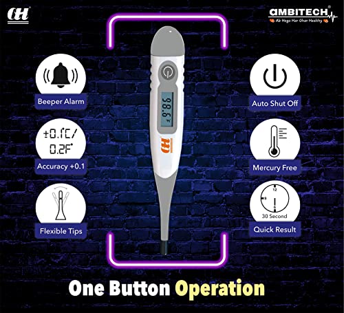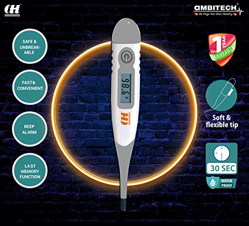 AmbiTech Soft & Flexible Digital Thermometer with One Touch Operation for Child and Adult Oral or Underarm Use (Made in India) (1 Year Warranty)