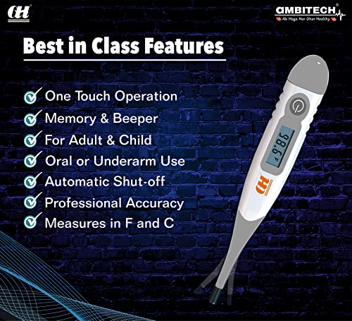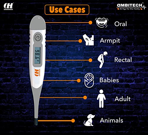 AmbiTech Soft & Flexible Digital Thermometer with One Touch Operation for Child and Adult Oral or Underarm Use |Made in India|1 Year Warranty