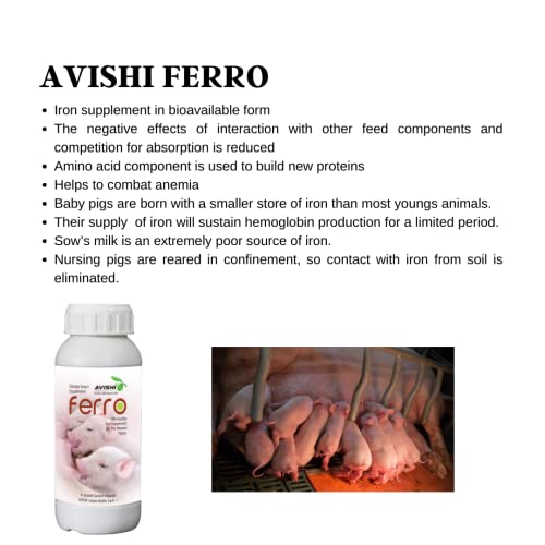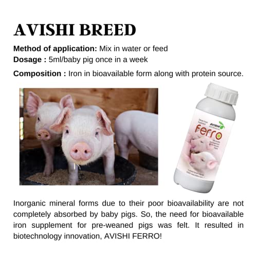 Baby pigs are born with a smaller store of iron than most youngs animals. Their supply of iron will sustain hemoglobin production for a limited period. Sow’s milk is an extremely poor source of iron. Nursing pigs are reared in confinement, so contact with iron from soil is eliminated. Iron is vital component in hemoglobin formation. Without supplemental iron, body stores will not last very long. Compared to other domestic mammals, the baby pig has a tremendeous ability to grow. Rapid growth rate requires iron to maintain adequate hemoglobin. Anemia lowers the resistance of the pigs to disease and respiratory problems. So, iron should be provided to piglets before weaning. Composition : Iron in bioavailable form along with protein source Methods of application : Mix in water or feed Dosage : 5ml/baby pig once in a week Inorganic mineral forms due to their poor bioavailability are not completely absorbed by baby pigs. So, the need for bioavailable iron supplement for pre-weaned pigs was felt. It resulted in biotechnology innovation, AVISHI FERRO!
