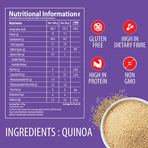 Bagrrys Quinoa 1kg- Diet Food | Cereal for Breakfast | Gluten Free | Quinoa Seeds | High in Dietary Fibre