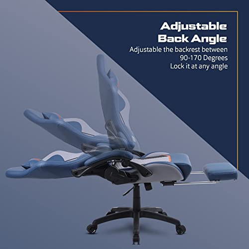 BAYBEE Drogo Multi-Purpose Ergonomic Gaming Chair with 7 Way Adjustable Seat, Head & USB Massager, PU Leather Lumbar Pillow Home & Office Chair with Full Reclining Back Footrest (Racer Blue)