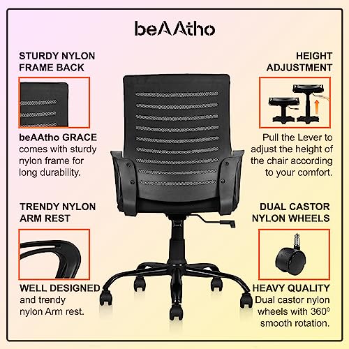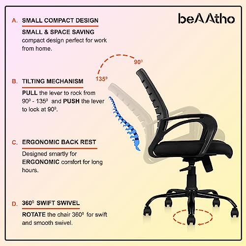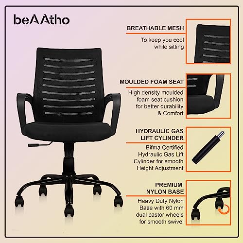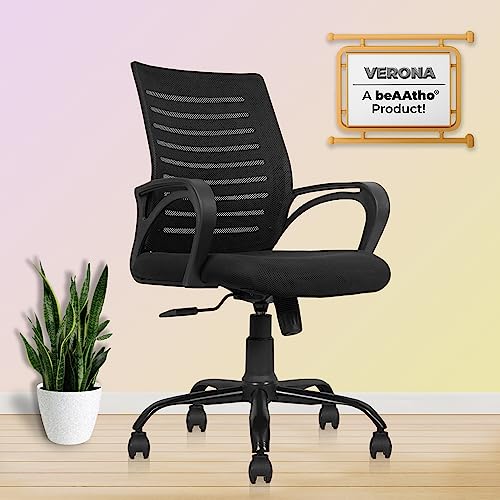 beAAtho® Verona Mesh Mid-Back Ergonomic Desk Office Chair with Tilting Mechanism, Comfortable Seat, and Revolving Heavy Duty Metal Base | Ideal for Work from Home & Study (Black)