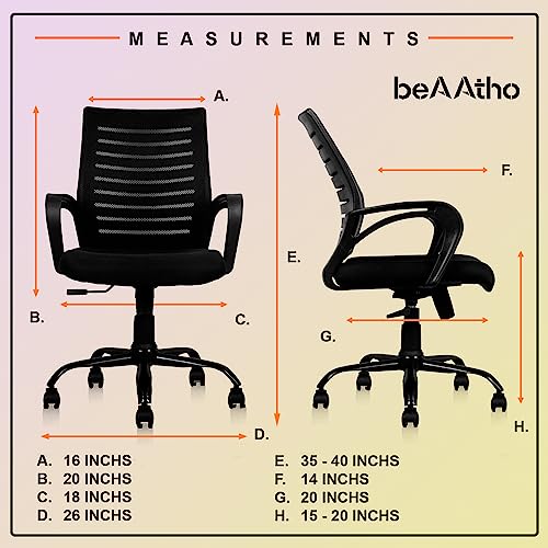 ERGONOMICALLY ADJUSTBALE :- beAAtho VERONA is designed to give you ultimate comfort by providing you fully adjustable chair which has Ergonomic Nylon back support, with breathable mesh to keep you sweat free, adjustable height, Smart Tilting Mechanism with locking feature and Smooth 360 degree Swivel.