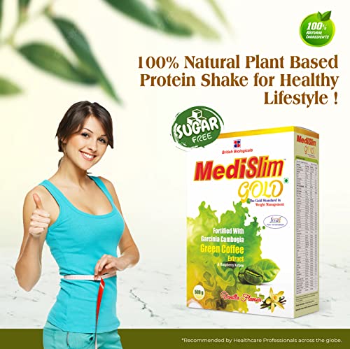 BRITISH BIOLOGICALS – Medislim Gold Meal Replacement Shake For Weight Management – 500 GM – Sugar-free, Cholesterol-free, Zero Trans-fat, Gluten-free Drink with (Goodness of Garcinia Cambogia, Raspberry, Ketone)