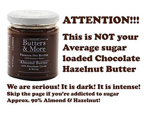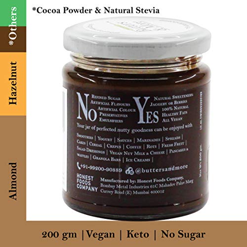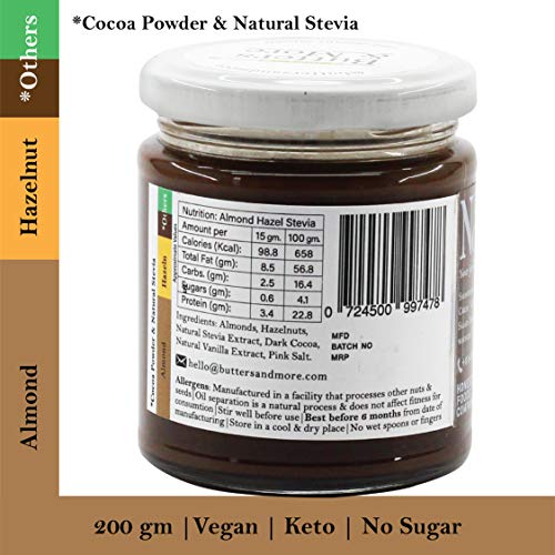 Butters & More Vegan Almond Butter With Hazelnuts, Dark Cocoa & Stevia (200G). Keto & Diabetic Friendly.