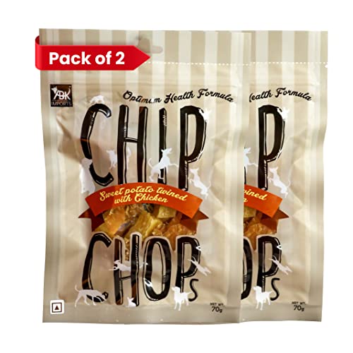 Chip Chops Sweet Potato Chicken Dog Treat, Optimum Health Formula, Highly Nutritional & Digestible, Suitable for All Dog Breeds, Easy to Digest, No Artificial Flavors Added, Multi-Pack (Pack of 2) – 140g
