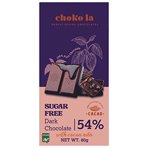 Chokola 54% Sugar Free Dark Chocolate Vegan Bar | 100% Couverture Chocolate | Vegan Chocolates | Chocolate Bar | Chocolate Gift | Dark Chocolate | 80 Gram