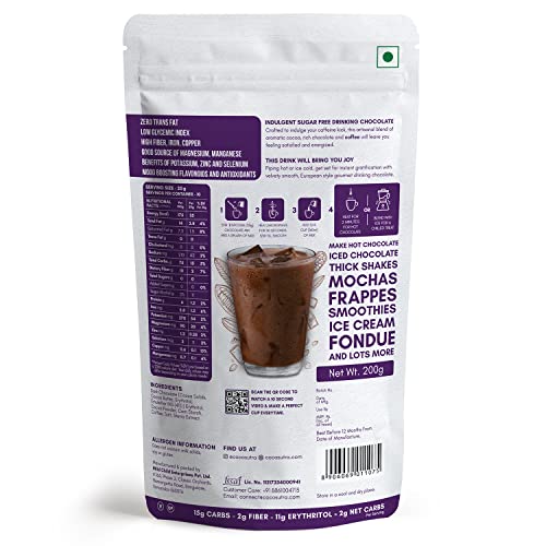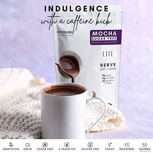 COCOSUTRA LITE – SUGAR FREE Drinking Chocolate Mix – Mocha | Zero Sugar, Low Carb, Low Calorie | Stevia & Erythritol based | Keto Friendly Hot Chocolate | Vegan | Enjoy hot or cold | 200g