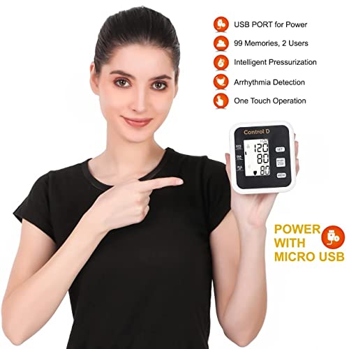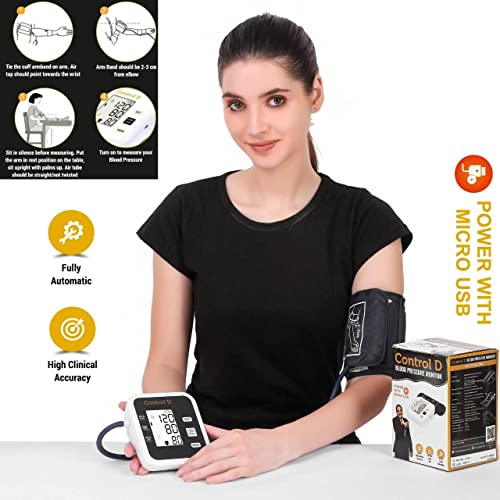 Control D Fully Automatic Oscillometric Digital Blood Pressure Checking Machine Upper Arm Portable Digital Blood Pressure Monitor BP Machine Power With Micro USB (Black and White)