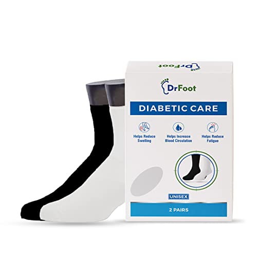 Dr Foot Diabetic & Arthritis Socks | Anti-Microbial and Anti-Odour Socks | Ultra-Soft Cushioned Sole | Prevents Injuries & Blisters | Premium Combed Cotton | Unisex, Free Size | 2 pairs (Black, White)