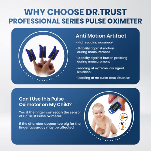 Dr trust professional series pulse rate and alarm: The newly upgraded Dr Trust Finger Pulse Oximeter is an affordable and accurate way to check pulse rates and blood oxygen saturation levels. Simple one-button design allows for easy operation. Small portable size makes it easy to handle and carry. Helpful for athletes and pilots to obtain quick and accurate oxygen saturation readings. This is the best pulse oximeter available for medical professionals. The product is water resistant and contains audio visual alarm. Dr Trust is a registered trademark of Nectar Biopharma Private Limited. We will actively and aggressively pursue any parties who infringe on our intellectual property rights to the maximum extent allowed by the law. All product designs, packaging designs, product images and text on this page are protected by various Indian and international patents and copyrights