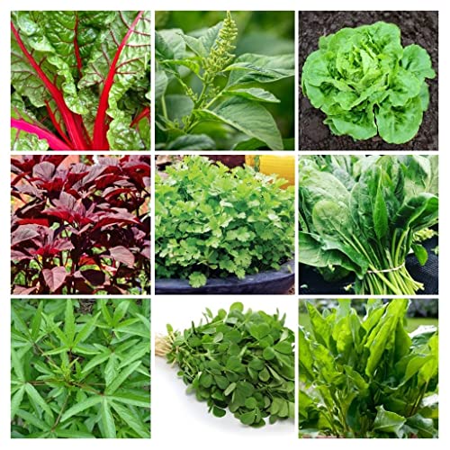 Elamgreen organic 9 variety of home garden leafy vegetable seeds kit gongura green green sorrel red amaranthus green amaranthus spinach green coriander fenugreek lettuce swiss chard 200seeds each