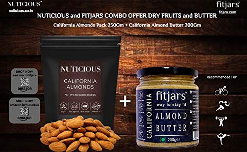 FITJARS – All Natural California Almonds 250 G+ California Almond Butter 200 G (immunity Booster/Natural/Vegan)