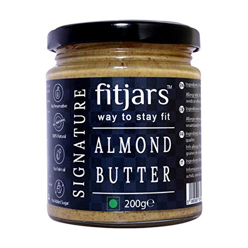 Our FITJARS Signature Almond Butter Smooth Unsalted -200gâ„® is Keto Vegan & ultra-pure, made simply from Premium Almond. We roast Almonds until they are light brown and oozes out natural nutty aroma and blend it until get smooth consistency. Our Signature Almond Butter Smooth Unsalted is freshly packed in the glass jar and natural oils will separate to top of the jar which is very natural. Mix well before using the Signature California Almond Butter Smooth Unsalted.Each Signature California Almond Butter Smooth Unsalted jar is subjected to high level of quality check so you don’t have worry about quality and taste.