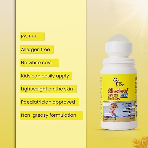 Fixderma Shadow SPF 50 Kids Roll On, Sunscreen for Kids | Kids Sunscreen SPF 50 | Roll On for Kids with Golden Seaweed & Phytosterol | Kids Sunscreen, PA+++, UVA & UVB Protection – 30gm
