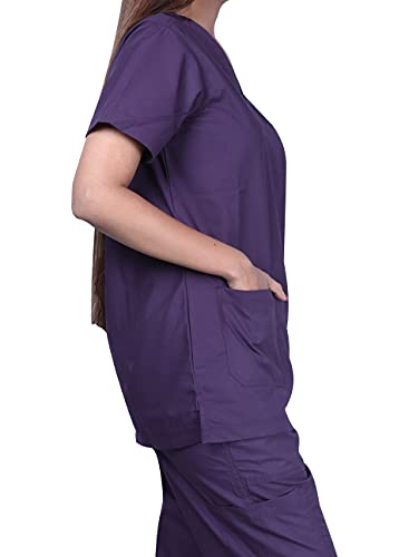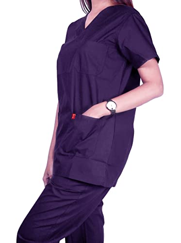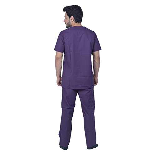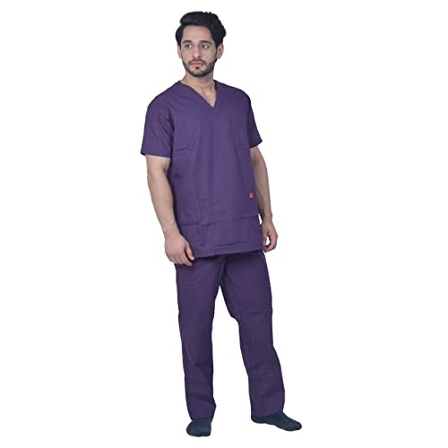 French Terrain Unisex V-Style Neck Polyester Cotton Medical Scrub Suit Set, Top and Bottom with 6 pockets, Color_Redwine. Top- V-Neck Short Sleeve with one chest pocket and two patch pockets at front and side slits.Trousers has 2 cross pockets, one knee pocket & elasticated waist with drawstring of body fabric. Premium quality of elastic for waist is used to give flexibility and to sustain multiple washes. Excellent , Durable Stitching quality, Top with Triple Needle Stitch with Bar tacks on all stress points.
