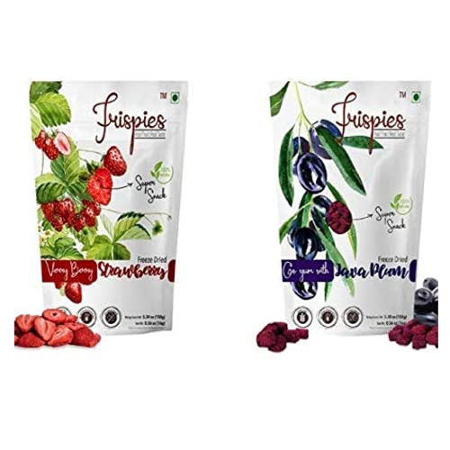 Frispies Freeze Dried Fruits | Strawberry & Java plum | Healthy Chunks | No Added Sugar | 100% Natural | Gluten Free | Low Calorie Snack | Dehydrated Snacks for Kids and Adults (20 gm/per)| Pack of 2|