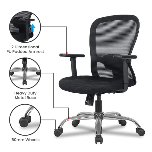Green Soul® Crystal V2 Mid Back Mesh Ergonomic Office Chair, Home Computer Desk Chair with Smart Synchro-Tilt Mechanism, 1D Adjustable Armrests, Adjustable Lumbar Support & Heavy Duty Metal Base