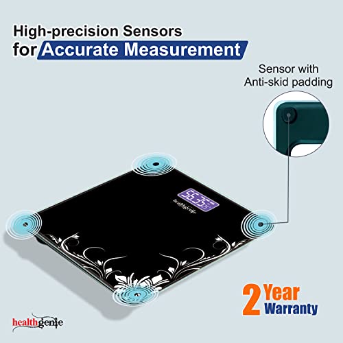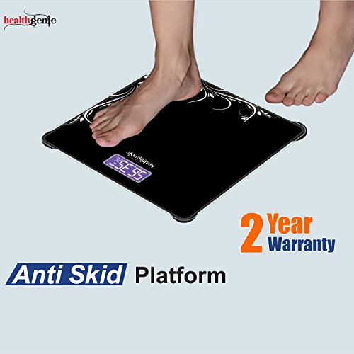 Healthgenie Weight Machine For Body Weight Large LCD Display Weighing Scale with 3 Year Warranty & Batteries HD-221 (Black Pattern)