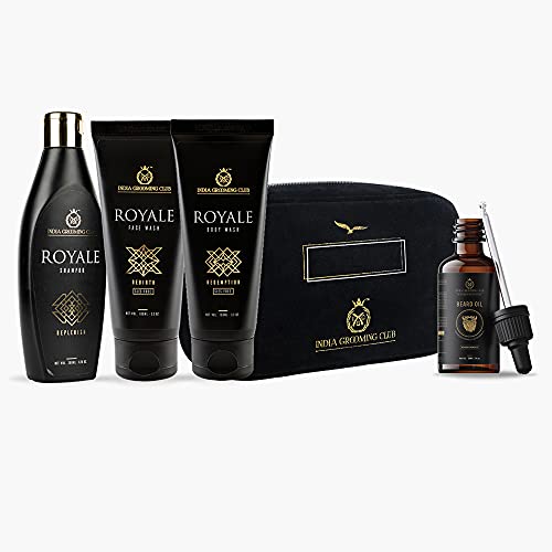 India Grooming Club Essential Travel Kit Luggage Accessories Toiletry Bag and Dopp Kit for Men With Face Wash, Body Wash, Shampoo and Beard Oil