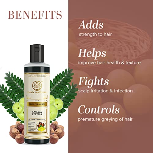 Khadi Natural Amla & Reetha Hair Shampoo | Anti-Hair Fall Shampoo | Shampoo for Thick & Strong Hair | Ayurvedic Shampoo for Healthy Hair | Suitable for All Hair|210 ml