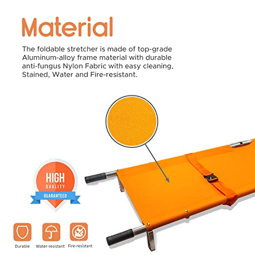 EASY TO CLEAN AND DRY: This foldable stretcher is made of top-grade aluminum-alloy frame material with durable anti-fungus Fabric with easy cleaning, stained-resistant and waterproof.