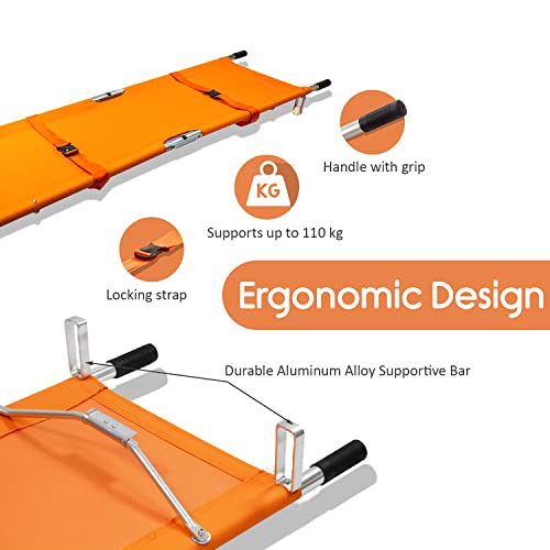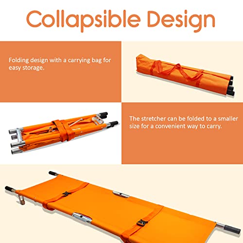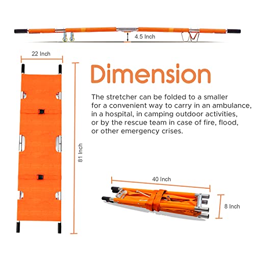 MULTIPURPOSE: This Medical emergency folding stretcher is suitable for hospitals, gymnasiums, ambulances, construction sites and emergency centre’s to carry the sick and the wounded. It can help you take care of people with limited mobility and help you transfer, and reposition the patient relatively easily.