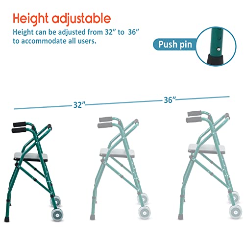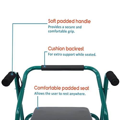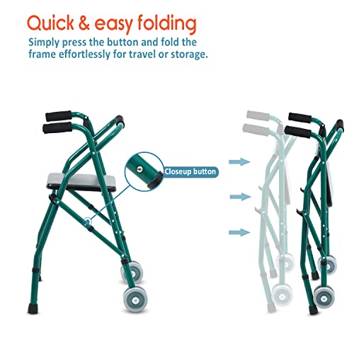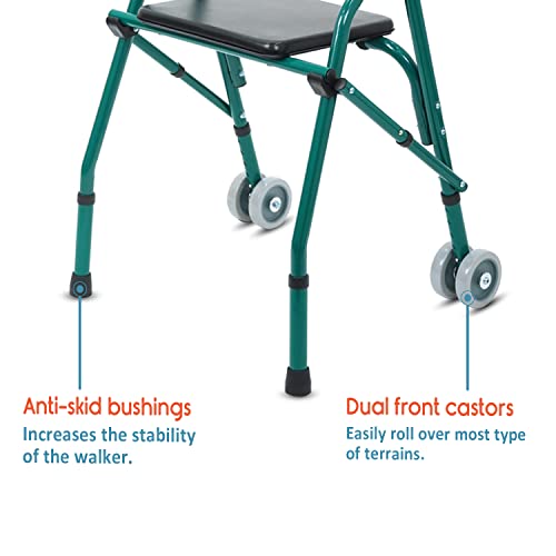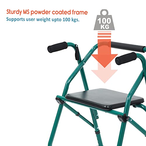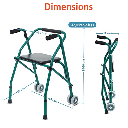 Kosmocare Premium Imported Folding Comfort Walker With Seat Incl. 2 Pairs Of Dual Front Wheels