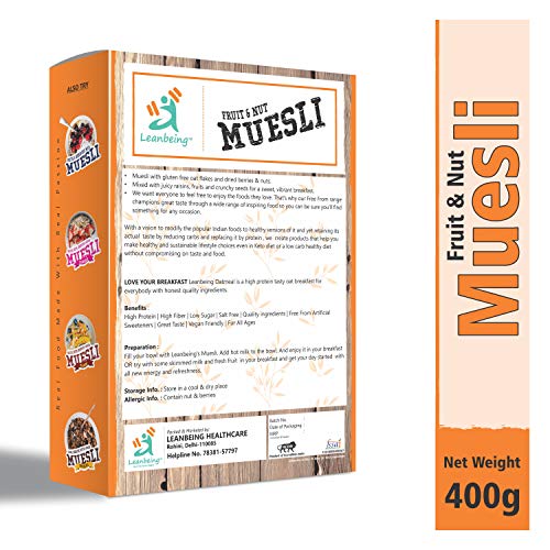 Leanbeing Muesli Fruit & Nut 400G | Gluten Free | Natural Breakfast Cereal |Naturally Sweetened