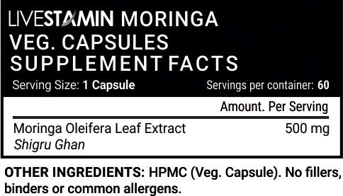 LIVESTAMIN Moringa capsules are manufactured under high quality standards using safe and natural ingredient. Vegan and vegetarian friendly- Moringa vegetarian capsules, is produced in gluten-free capsules and contains no artificial ingredients