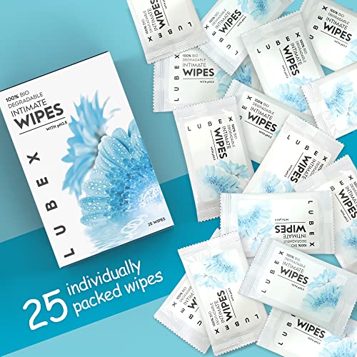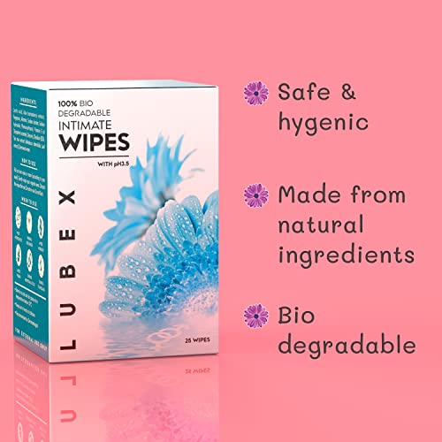 Lubex Natural Intimate Wipes for Pre/Post intimacy cleaning for Women & men – Made with Aloe Vera, Tea Tree & Vitamin E – 25 count