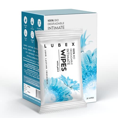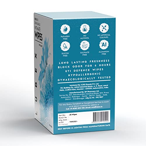 One box of Lubex Intimate Wipes contains 25 Individually-Wrapped wipes for easy use. Gynaecologist-tested, hypoallergenic, free from alcohol, no artificial colour, silicon free, Sulphate free, Aluminium free and free from dyes and paraben.