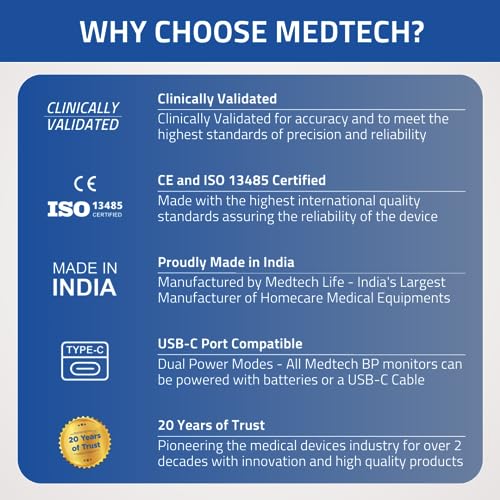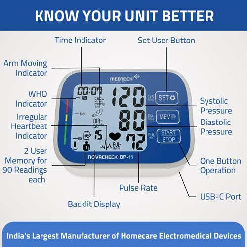 MEDTECH BP11BL (Backlit Display) Fully Automatic Portable Digital Blood Pressure Monitor with Smart MDD Technology – Cuff Size – 22-42cm