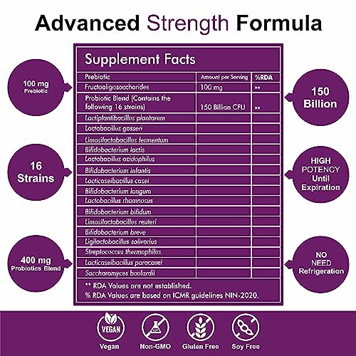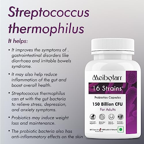 Meibotan No1 Probiotic Supplement Designed by Scientist Probiotics 150 Billion CFU For Men & Women with 16 Strains – Stimulates the immune system Digestion Immunity Support- 60 Veg Capsules