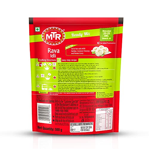 A healthy and yummy breakfast is what you deserve to fill your stomach and that you get in MTR Ragi Rava Idli which has been extracted from the finely graded ingredients. The Ready Made Ragi Rava Idli with full of extreme taste you get when it is served hot and at a very less period of time, since it hardly takes your time to prepare. Its an instant mix food with the additional goodness of Ragi, Wheat and Bengalgram. Ragi has got the extreme source of calcium among cereals which plays a significant role in developing bone health. Ragi is also rich in protein, iron and vitamins.The goodness of the products also lies in the fact that, it is made of 100 percent natural ingredients without any preservatives, transfat. MTR Ragi Rava Idli is also absolutely free from cholesterol and any artificial colors.