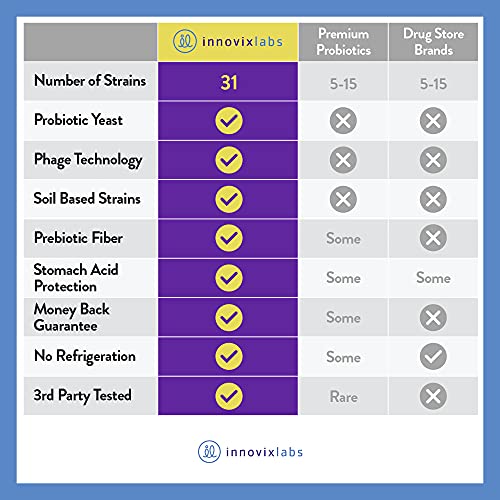 Multi-Strain PROBIOTIC (by InnovixLabs). Broad Spectrum – 26 Diverse Probiotic Strains. 10,000,000,000 Live Cultures at Expiration. Gluten-free. 60 Delayed-Release Tablets.