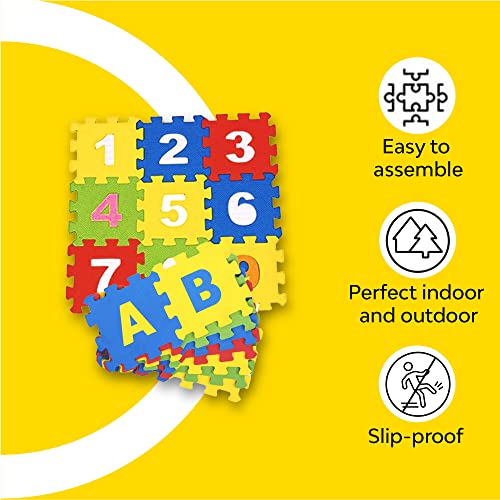 My Newborn Baby Playmat – 36 Pcs | Carpet Play Mat for Kids Infant Crawling Mat with 0-9 & A-Z Alphabets | Waterproof | Slip-Proof | Non-Toxic | Easy to Maintain | Travel-Friendly | Puzzle Format