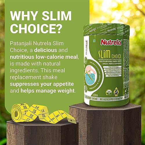 “Patanjali Nutrela Slim Choice is a fantastic meal replacement shake designed to help people manage their weight and achieve their weight loss goals in a healthy way. With low GI and high fiber, it serves as an appetite suppressant and helps control hunger, reducing sugar cravings while boosting metabolism. Each serving is enriched with 15g of high-quality protein, 25 micro-nutrients, and essential vitamins and minerals, providing the body with all the essential nutrients it needs to function optimally. The shake is enriched with Sesbania Extract, Green Coffee, Garcinia Cambogia, Moringa Extract, Rose Hip Extract, and Silymarin, which are all essential ingredients for healthy weight management. Nutrela Slim Choice is perfect for people who struggle to control their food consumption or lead a hectic lifestyle. It is a convenient and nutritious meal replacement shake that can be easily consumed at any time of the day. To make the shake, simply take 300 ml of lukewarm skimmed milk and add one spoon (30g) of Nutrela Slim Choice. Stir and consume immediately. For healthy weight management, it is recommended to skip only one meal a day. Nutrela Slim Choice is GMO-free, gluten-free, and contains no added sugar, colour, or preservative, making it a healthy and safe option for people looking to manage their weight without any side effects. It comes in delicious vanilla flavor, making it an enjoyable way to manage weight while maintaining good health. Try Patanjali Nutrela Slim Choice today and take your weight loss and weight management journey to the next level.”