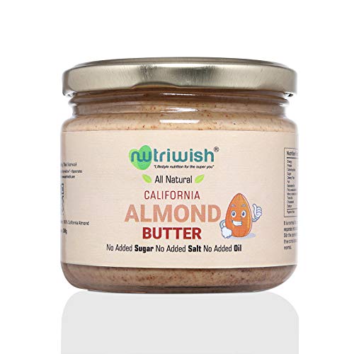 Nutriwish Almond Butter Bottle, 250 g – Unsweetened, No Added Oil, No Added Sugar, No Added Salt, 100% Natural