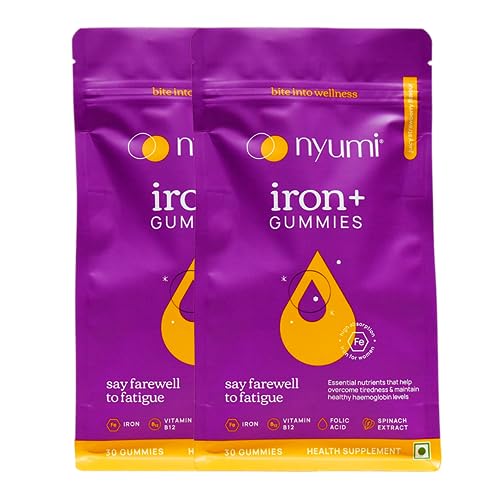 Nyumi Iron+ Gummies For Women | With Folic Acid, Zinc, Spinach Extract & Vitamin B12 | Supports Blood Building, & Fights Anemia | Helps Build Immunity and Energy | Pack of 2 | 60 Gummies