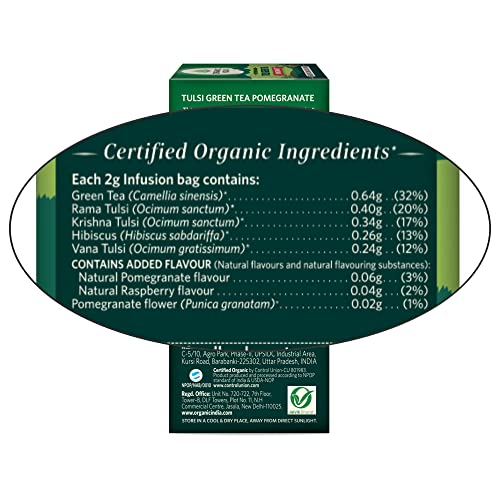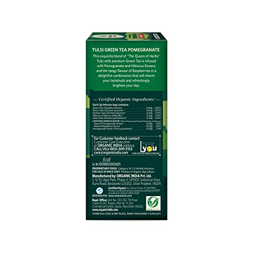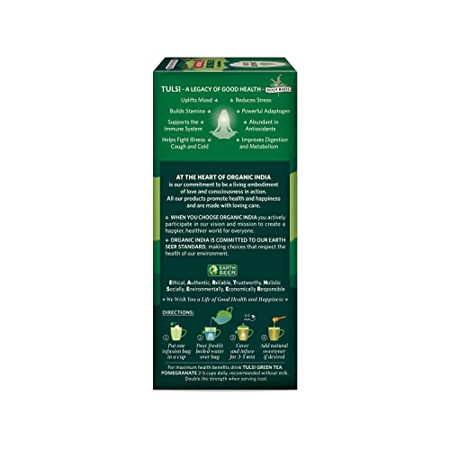Organic India Tulsi Green Tea, Pomegranate, 25 Tea Bags