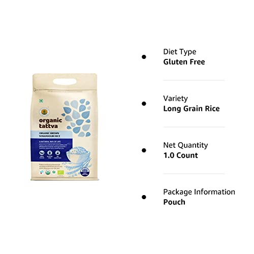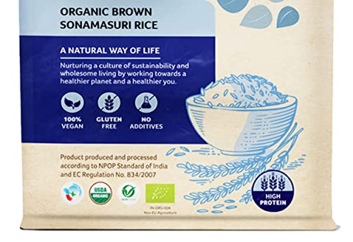 Organic Tattva, Organic Sonamasuri Brown Gluten Free and Unpolished Rice, 5 Kg