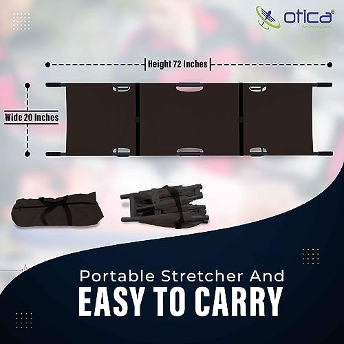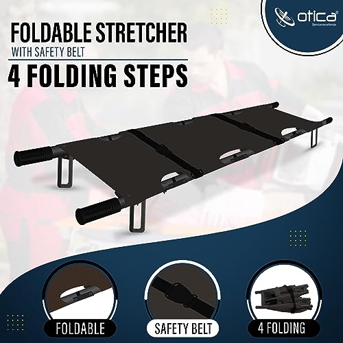 OTICA Foldable Stretcher for Patient Shifting, Portable Stretcher for Emergency Hospital Use, Stretcher for Patient with Safety Belt, Stretcher for Ambulance(Mild Steel) (Four Fold, Black)